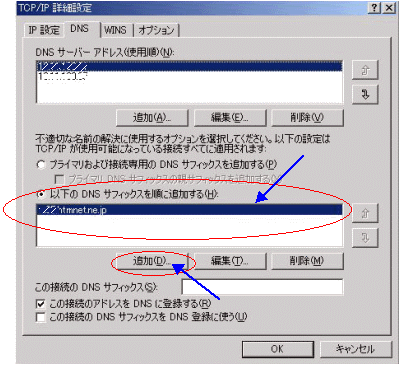 これは、ケーブルネット業者の資料に従い[DNS名]を画面下部の『追加』ボタンにより作成