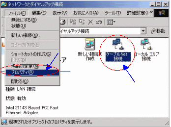3. 仮称『ケーブルNet接続』のアイコンをアクティブ(クリックで選択)にして、『ファイル』メニュ