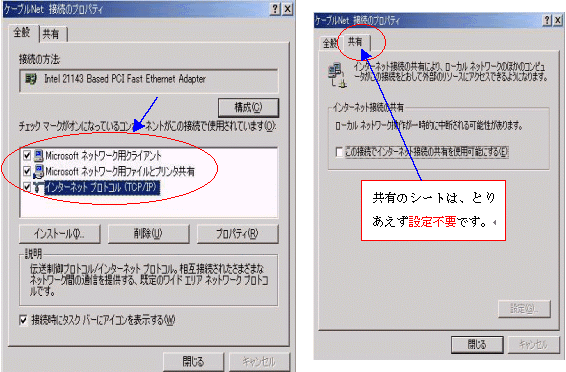 ファイルとプリンタ共有][インターネットプロトコル(TPC/IP)]が、セットになっていることを確認