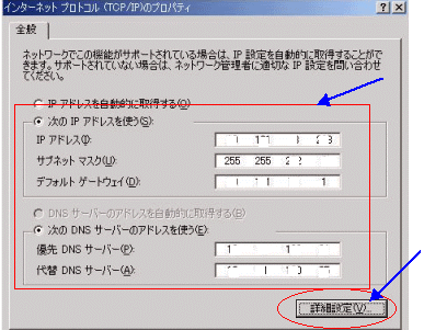 ているか確認して下さい。なければ、『デフォルトゲートウエィ』の『追加』ボタンで加えて下さい。